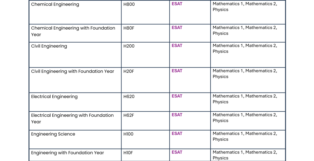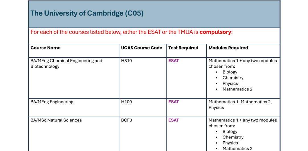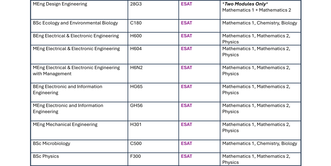 BEng / MEng Electronic and Electrical Engineering:ESAT(数学1 + 任意两模块)