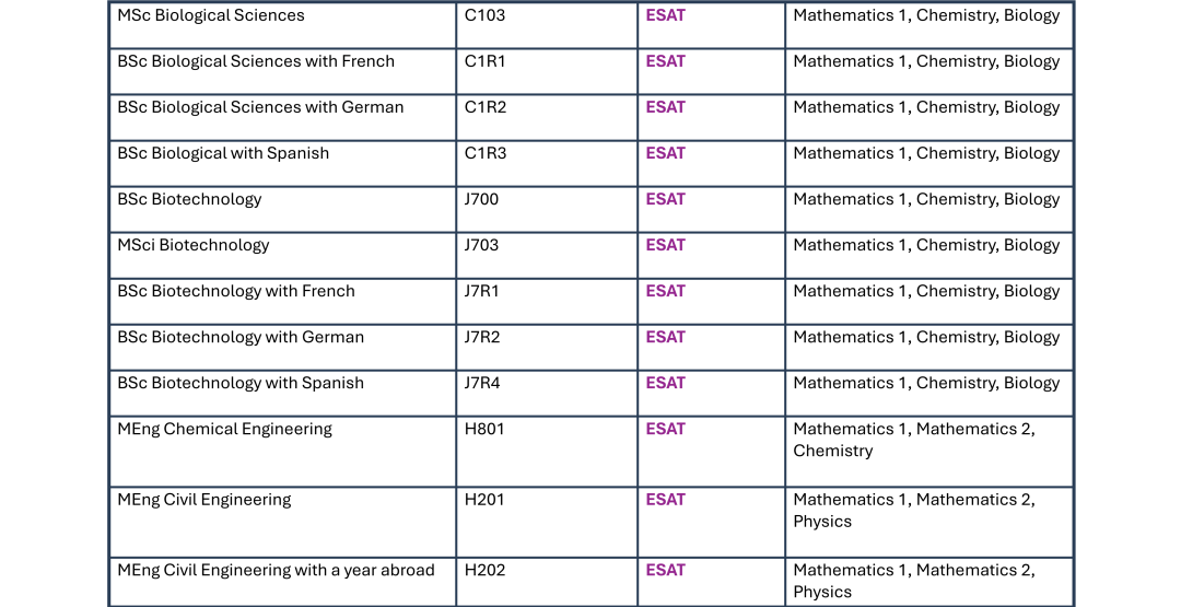 IC的ESAT专业统一要求:Mathematics1+Mathematics2+Physics/Chemistry/Biology(视专业而定)