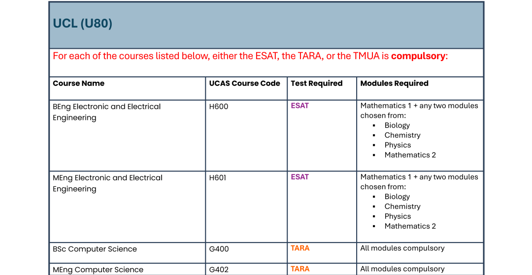 UCL是目前G5中笔试类型最杂的院校:ESAT、TARA、TMUA同时出现。
