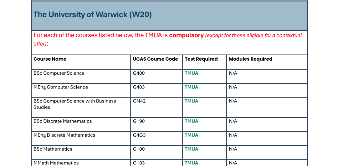 华威明确说明:接受Contextual Offer的学生可豁免TMUA。