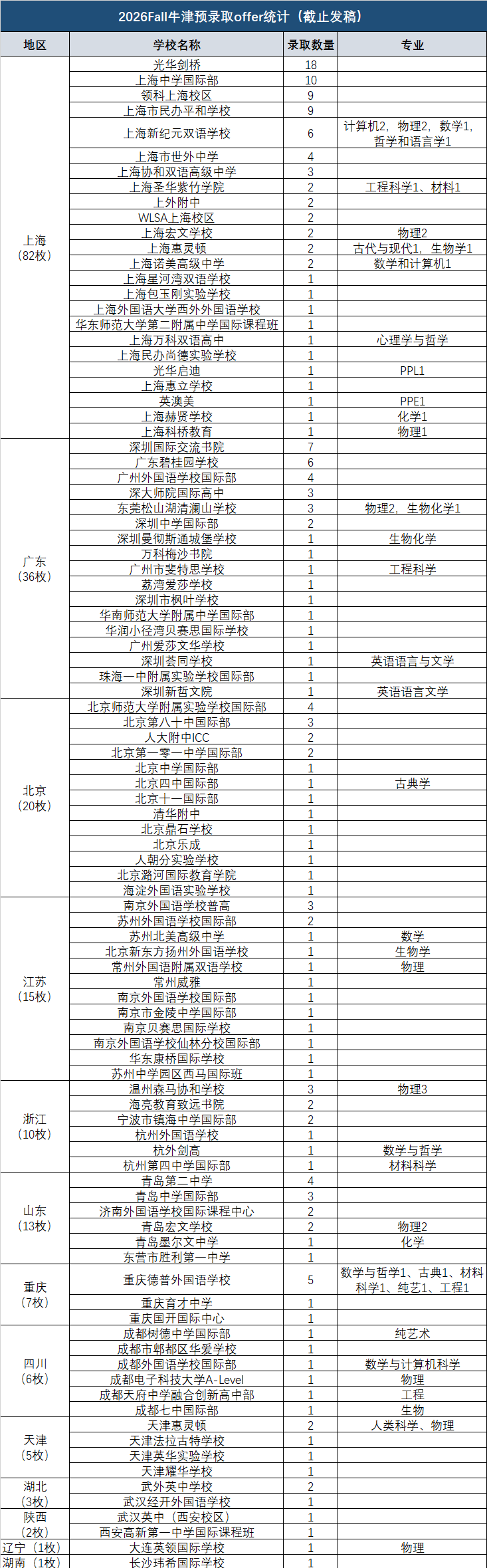 截至发稿,我们统计到牛津大学已向国内高中发放offer如下: