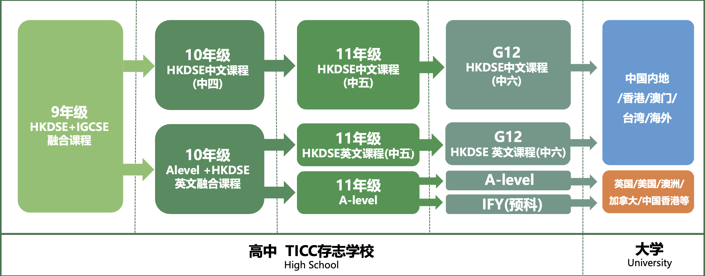 适合学生:英文能力强、A-level或HKDSE课程皆有考虑未来以全球前50大学和中国香港为主要目标。
