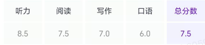 雅思总分:7.5分 听力8.5 阅读7.5 写作7.0 口语6.0