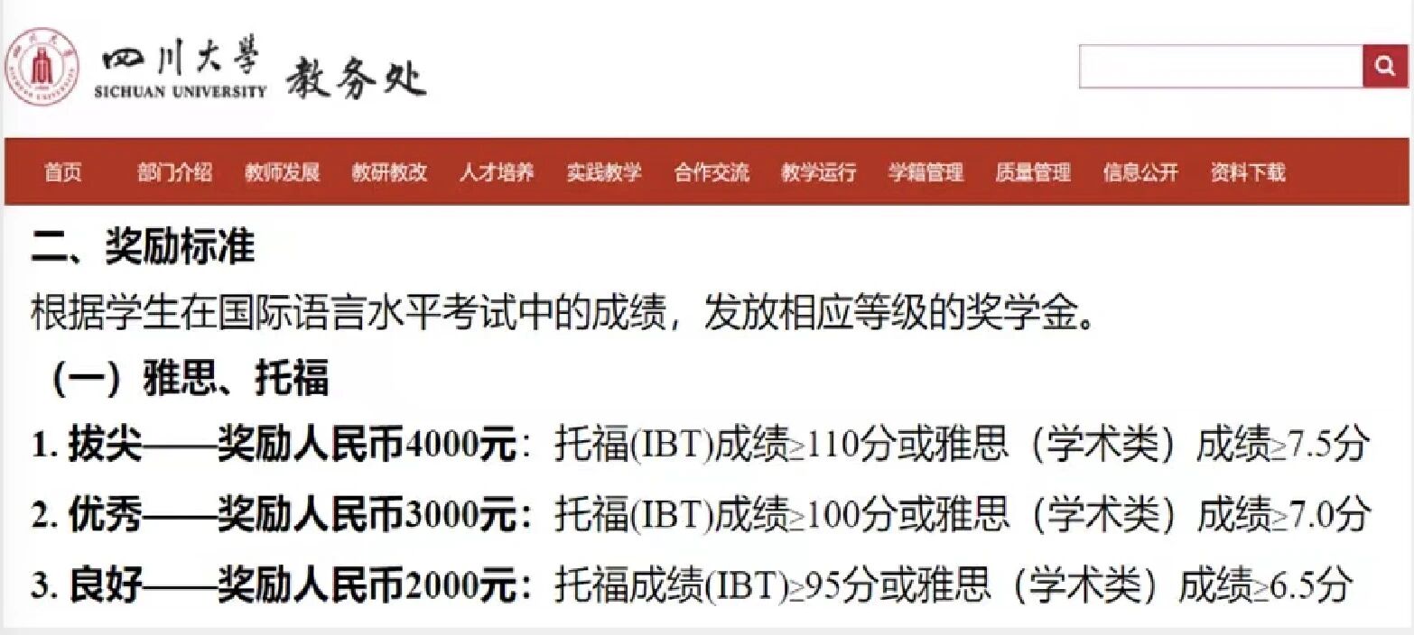 如果取得了高分成绩,甚至还有奖学金!如四川大学、中国农业大学等等。