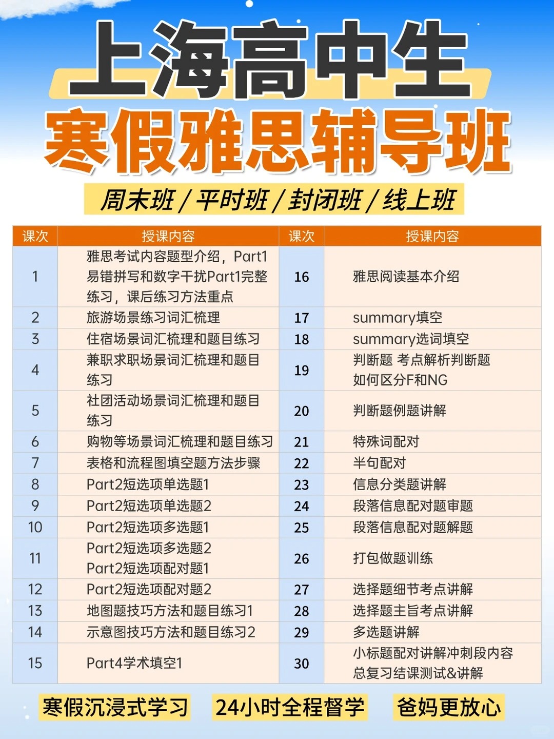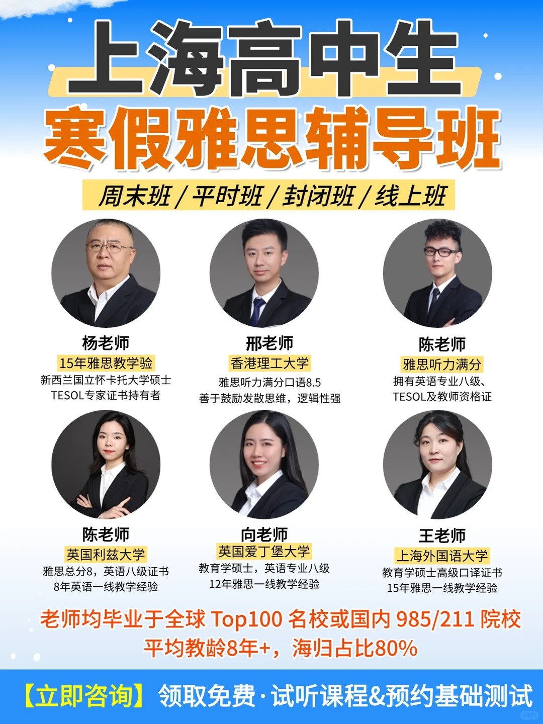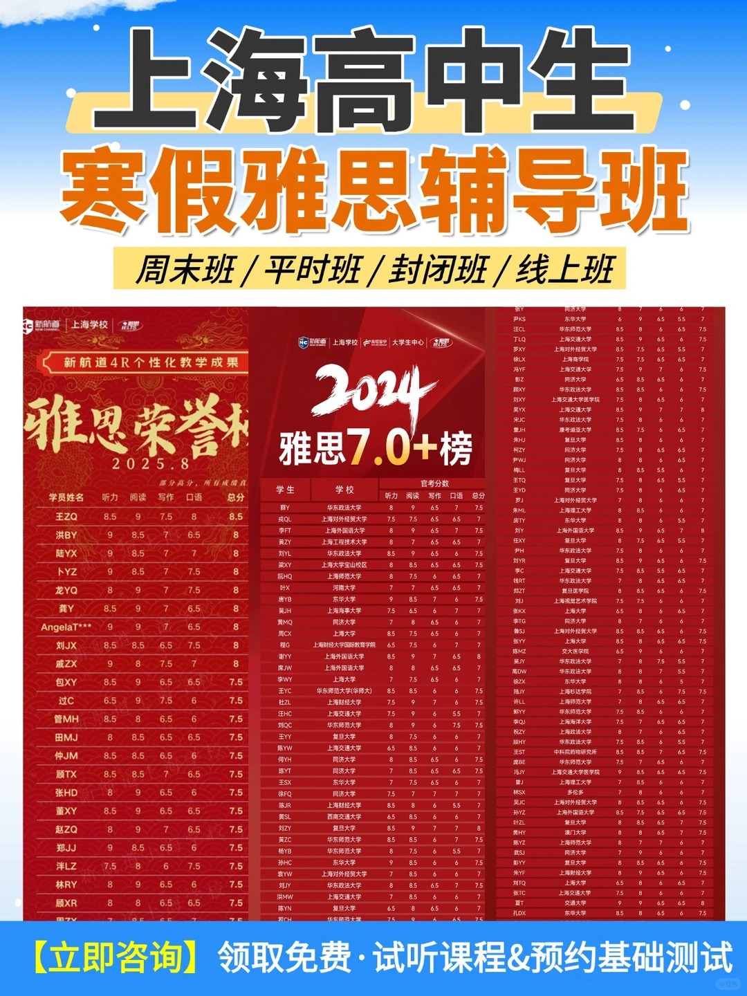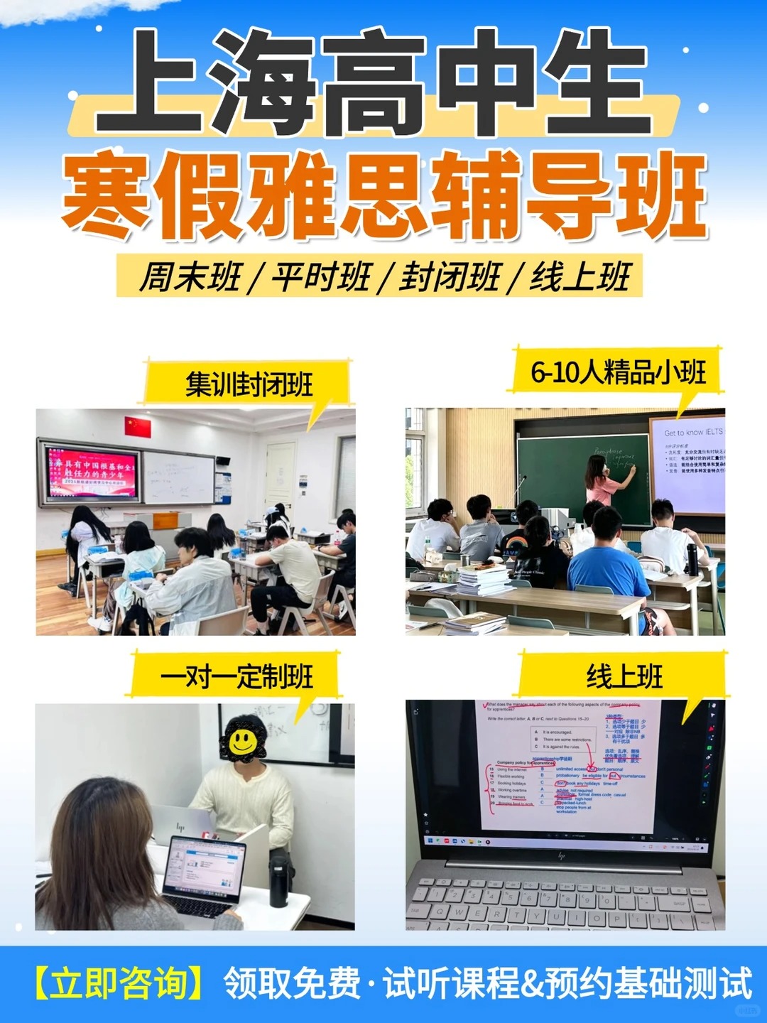 这个寒假,与其在迷茫中独自摸索,不如选择一条被验证的高效路径。新航道雅思高中生寒假班,以科学课程体系、资 深师资团队与全程保姆式督学,为你构筑从基础到突破的完整支持网络。在这里,每一份努力都被精 准引导,每一次进步都有迹可循。告别无效内耗,拥抱有序提升,让我们携手在这个寒假,助力你的雅思目标一次达成,迈向更广阔的未来!