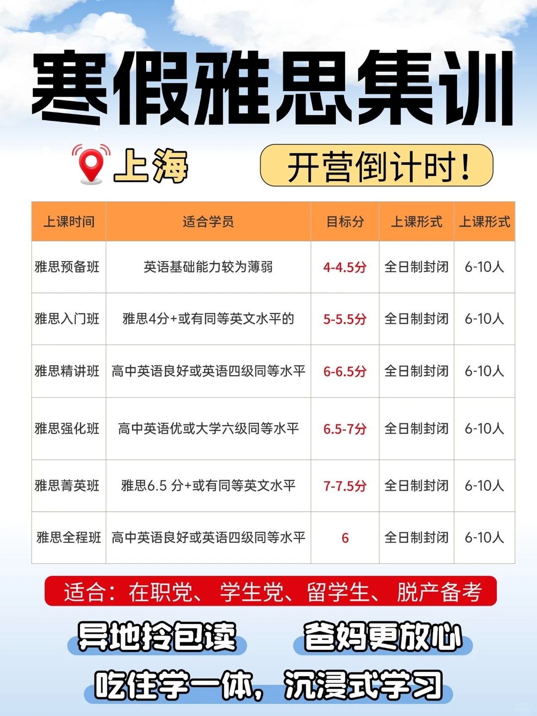 摘要:寒假12天,能真正改变什么?对于还在为雅思分数发愁的你,这可能是考前最后一次集中突破的黄金窗口。自学没有方向、刷题不见成效、口语写作无人指导——这些备考路上的顽疾,正在悄悄侵蚀你的信心与时间。新航道寒假雅思训练营,为你打造一座“沉浸式学习岛屿”,用科学规划的课程体系与精细到每小时的时间管理,帮助不同起点的考生在这个假期找到清晰路径,让高效冲刺成为可能。