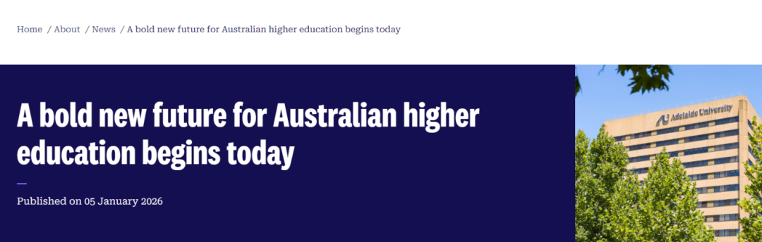 摘要:澳大利亚高等教育版图迎来历史性时刻!备受瞩目的阿德莱德大学与南澳大学强强联合,现已正式完成整合,以全新的“阿德莱德大学”之名全面启航。这所耗资50亿澳元打造的学术巨舰,不仅以全球第82位的QS排名强势亮相,更以涵盖广泛学科的近200个学位课程,为全球学子开启了通往南澳顶 尖教育资源的大门。2026年首批国际新生入学在即,一个更具规模与影响力的世界 级学府时代,已然拉开序幕。