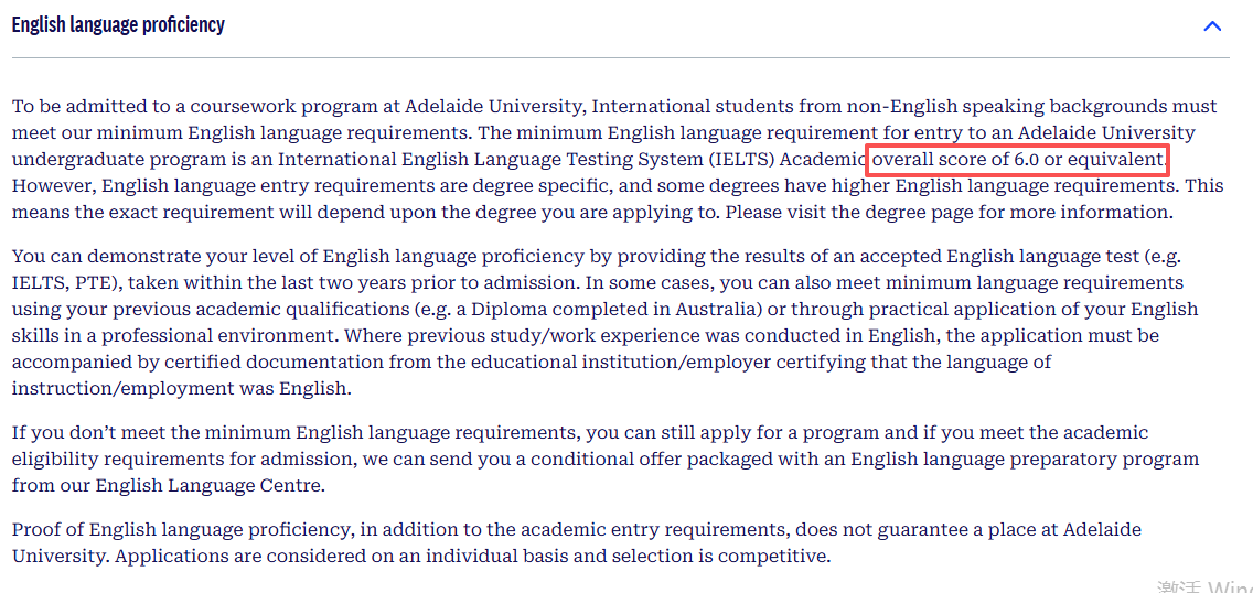 除了学术入学要求,学生还需要满足英语语言要求:最 低的雅思要求是6.0