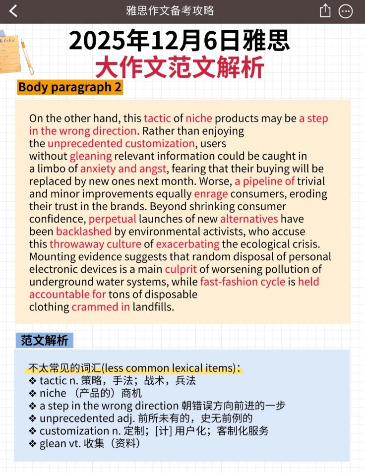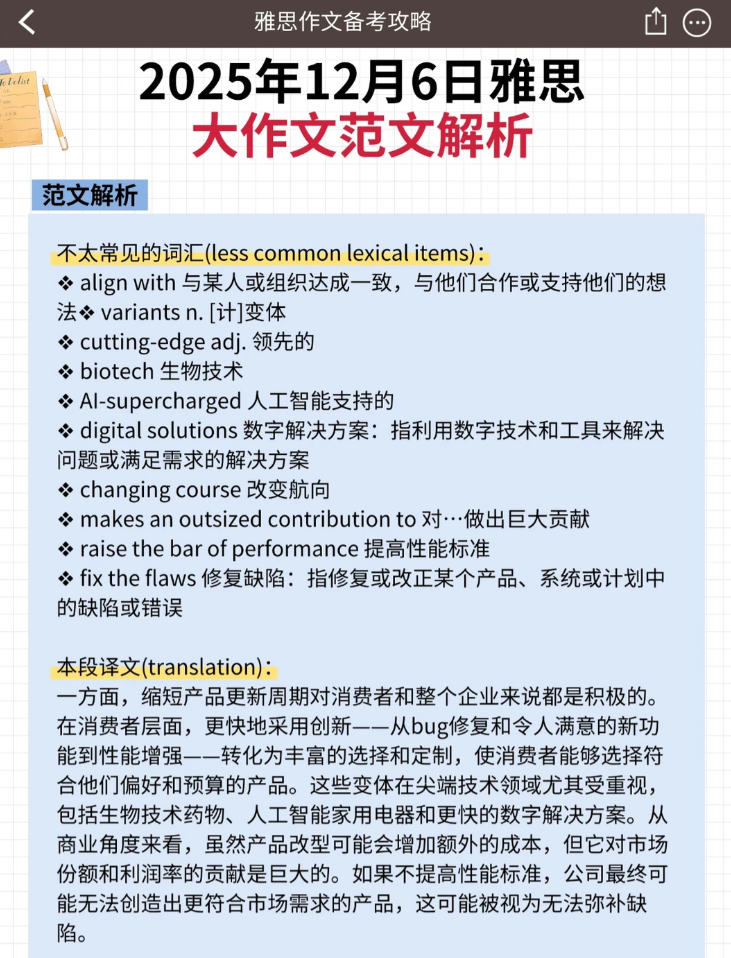 详细雅思大作文范文解析看笔记图片‼️
