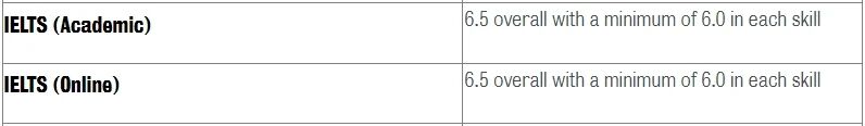化学/生物科学/认知科学/计算机科学/经济/化学工程等专业雅思要求总分6.5,小分5.5;