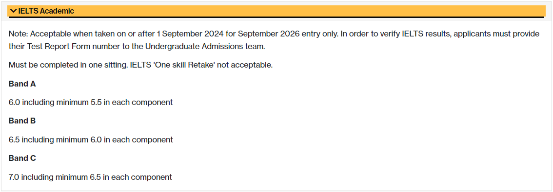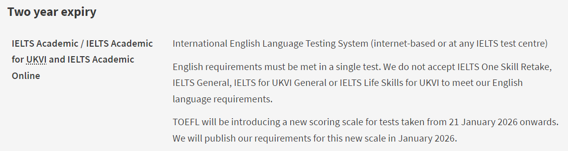 接受GCSE/IGCSE英语成绩替代雅思,具体要求如下: