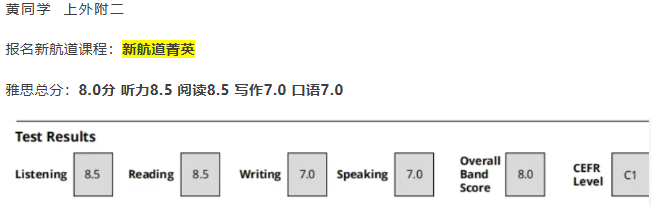 最让人惊叹的是黄同学的口语进步:从5分水平,一举跃升到7分。