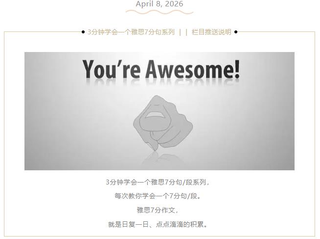 一个7分句子,背后是内容、逻辑、词汇、语法的四维合力。今天的例句告诉我们:高分不是堆砌难词,而是精 准表达——用“limited access to diverse food sources”点明前提,用“remove meat from diet”替代简单说法,用“iron and vitamin B12”给出具体例证。每一期3分钟,积累一个实用句型,拆解一个得分要点。写作没有捷径,但有方法。关注我们,下次继续用3分钟,带你学会下一个雅思7分句。每天进步一点点,7分离你并不远。