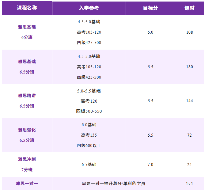 | 雅思6.5分强化段 6-10人班 | 6-10人 | 72课时 | ¥26800 | 在线咨询 |