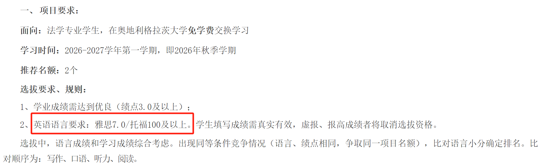 将来想保研,雅思/托福成绩也是一个重要的资格条件,例如2024年上海交通大学应届毕业生免试要求,申请者的英语水平需要达到雅思6分/托福90分以上。在大家都拿到四六级成绩的情况下,你有一份雅思/托福成绩,而且还是不错的雅思/托福成绩,相信在保研申请和考研申请过程中都是一个亮点。
