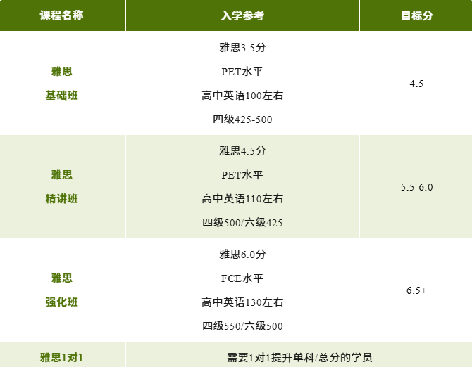 | 雅思免费试听课 | 不限 | ¥0元 | 在线咨询 | |