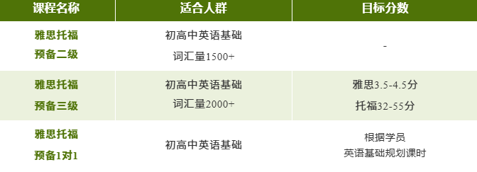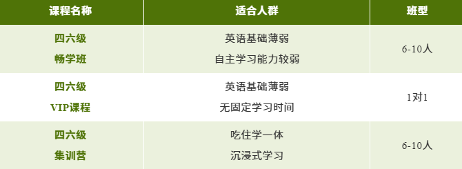 | 雅思6分精讲段 20-30人班住宿班 | 20-30人 | 96课时 | ¥9800 | 在线咨询 |