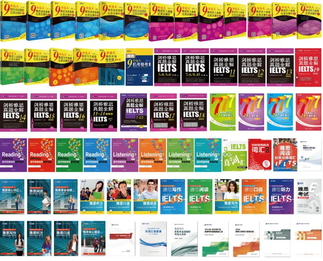 配套《胡敏雅思教材》《雅思9分达人》《剑桥雅思真题全解》,系统梳理高频题型与出题规律,帮助学生建立清晰应试策略,实现稳速提分。