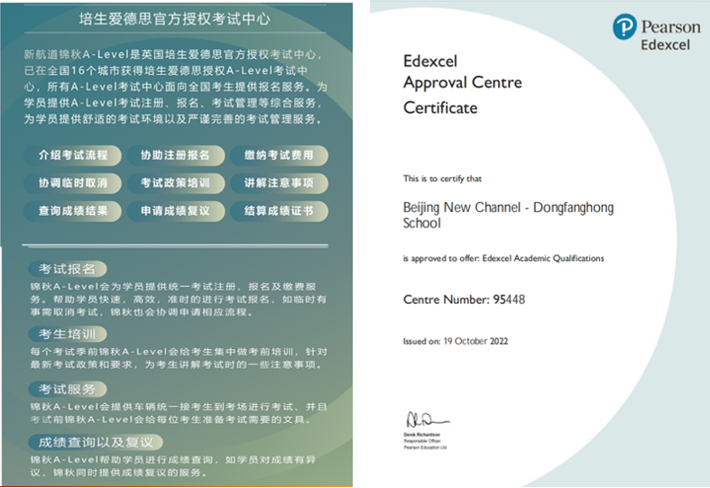 新航道与英国考试局 Edexcel取得合作。可提供学生从注册、报考、送考、预估等一站式A-Level考务服务。