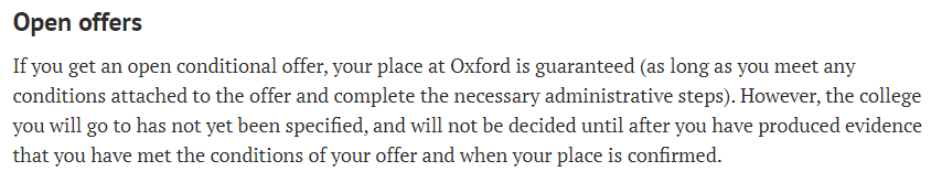 牛津另设有Open Offer机制:学生确认被录取,但具体学院待最终成绩公布后决定。
