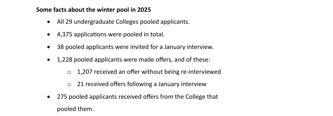 剑桥大学每年收到约22,000份本科申请,而录取名额仅约3,600个。为确保最 优 秀的申请者不会因学院选择或名额限制而被错过,大学设立了Winter Pool(亦称跨学院调剂池)机制。