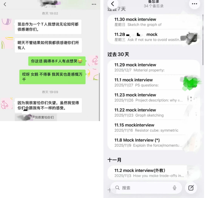 你的初心和渴望我们都能看见,也很欣慰你最后实现了梦想~你做什么都很认真mock一小时,复盘3小时,每一页都有记录~付出大量时间,极度专注,打磨心态,认真复盘一切,真的很令人敬佩~L同学,没有不拂晓的剑桥录取,请放心大胆的做你自己,去探索这个世界,期待你闪闪发光,我们一直都在