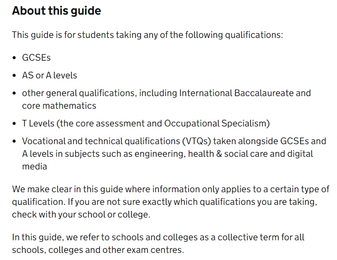 本指南主要面向在英格兰参加以下资格认证考试的学生(国际考生可作参考):