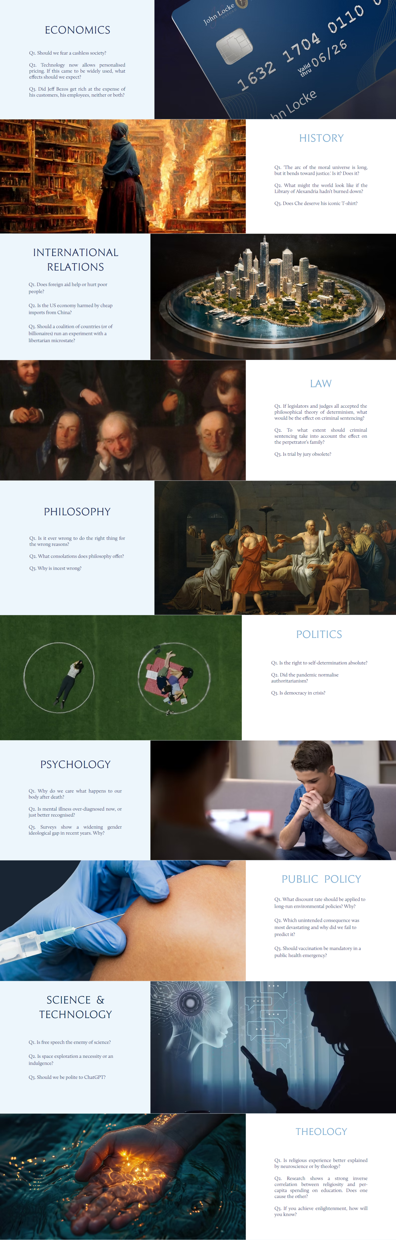 参赛者需从哲学、政治、经济、历史、心理学、神学和法律等七大领域中选择一个主题,撰写一篇2000字以内的论文。竞赛不仅考察学生的学术写作能力,还注重批判性思维和独立思考能力。