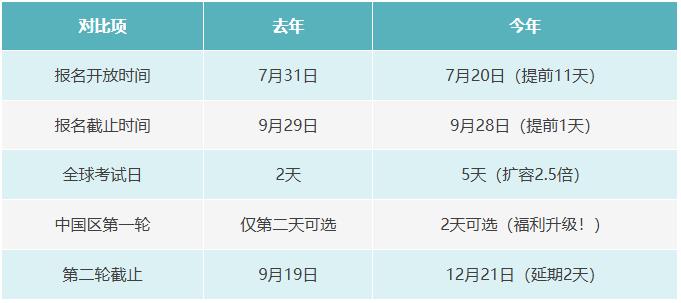 与去年相比,今年最 大的变化是:中国区第 一轮从“仅第二天”升级为“2天可选”,选考位的灵活性大幅提升!