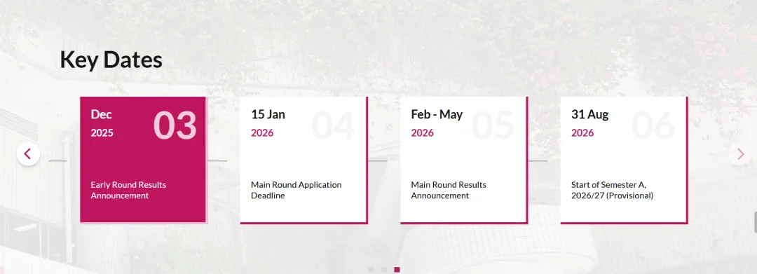 申请截止时间:2026年8月31日港城大主轮申请截止日期为1月15日,目前已经进入结果公布期(2月到5月)。但申请最终截止要到8月底。