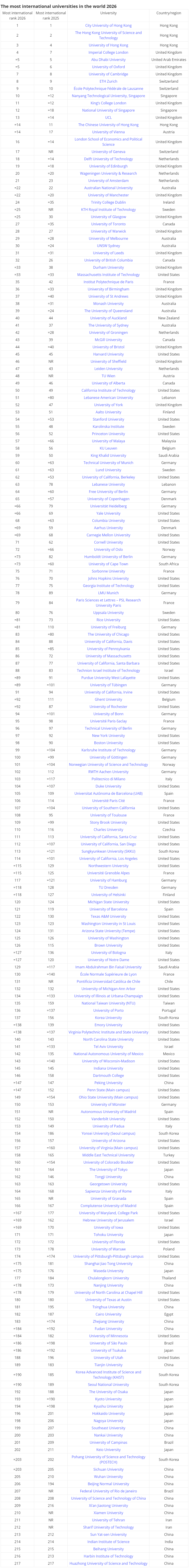 2026THE国际化大学排名重磅发布!中国香港包揽全球前3,英国17校入围世界百强
