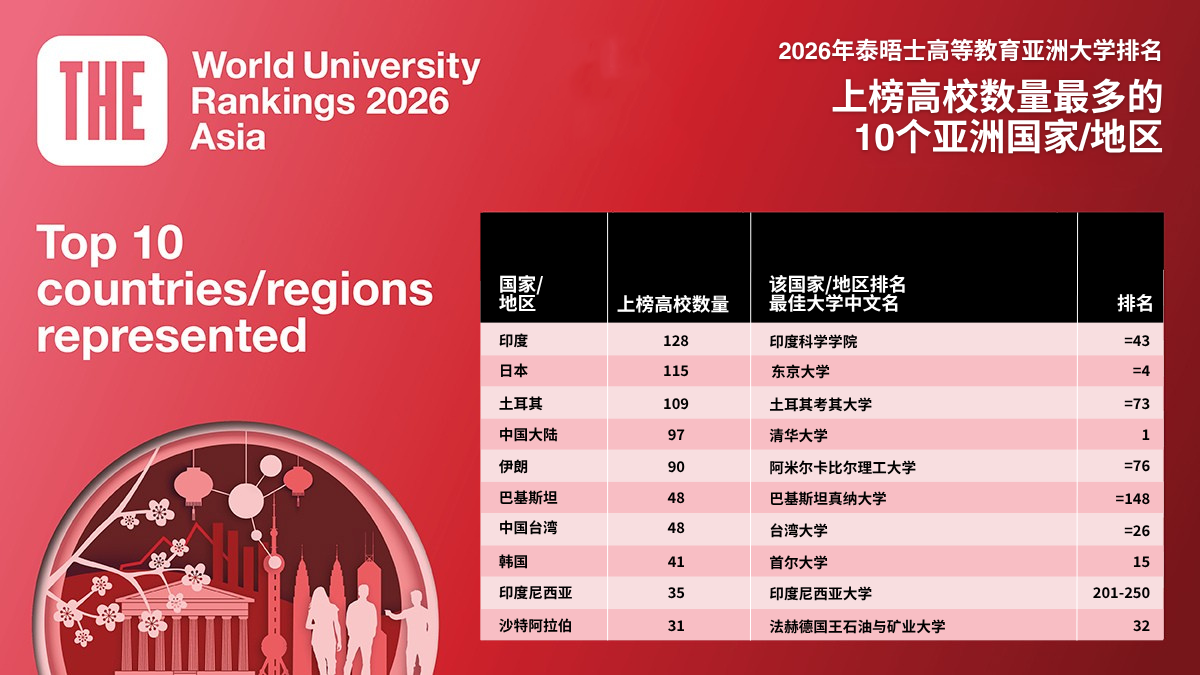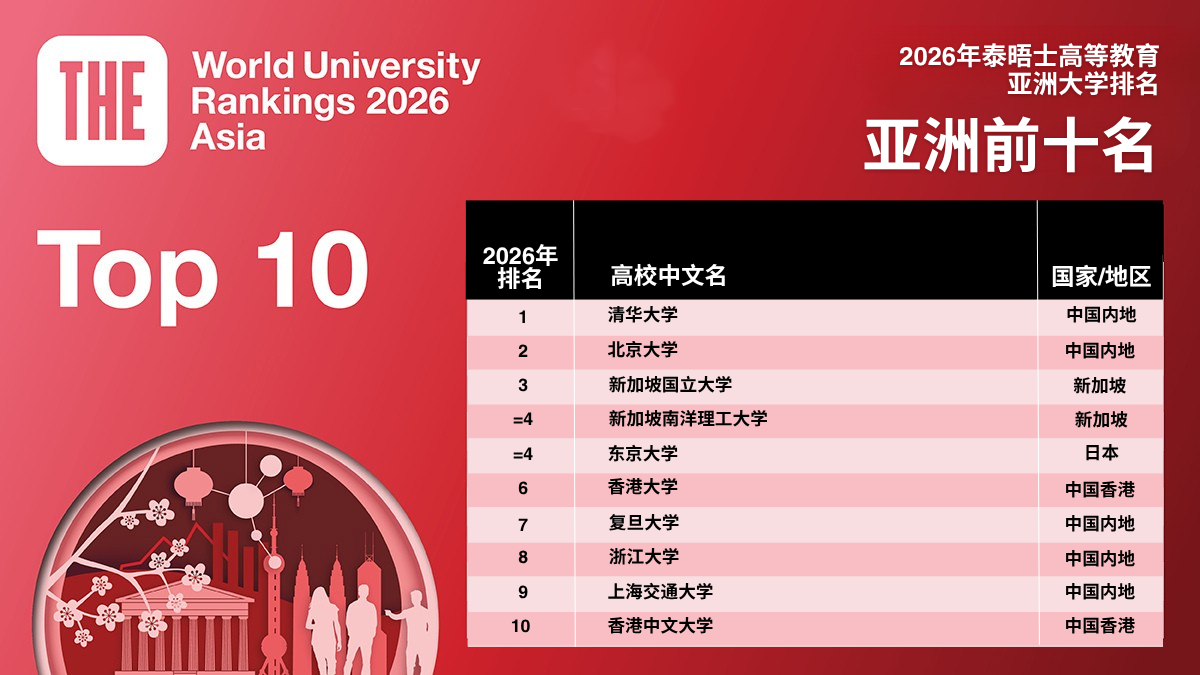 最 新!2026泰晤士亚洲大学排名出炉:清华蝉联第 一,港澳高校集体爆发!
