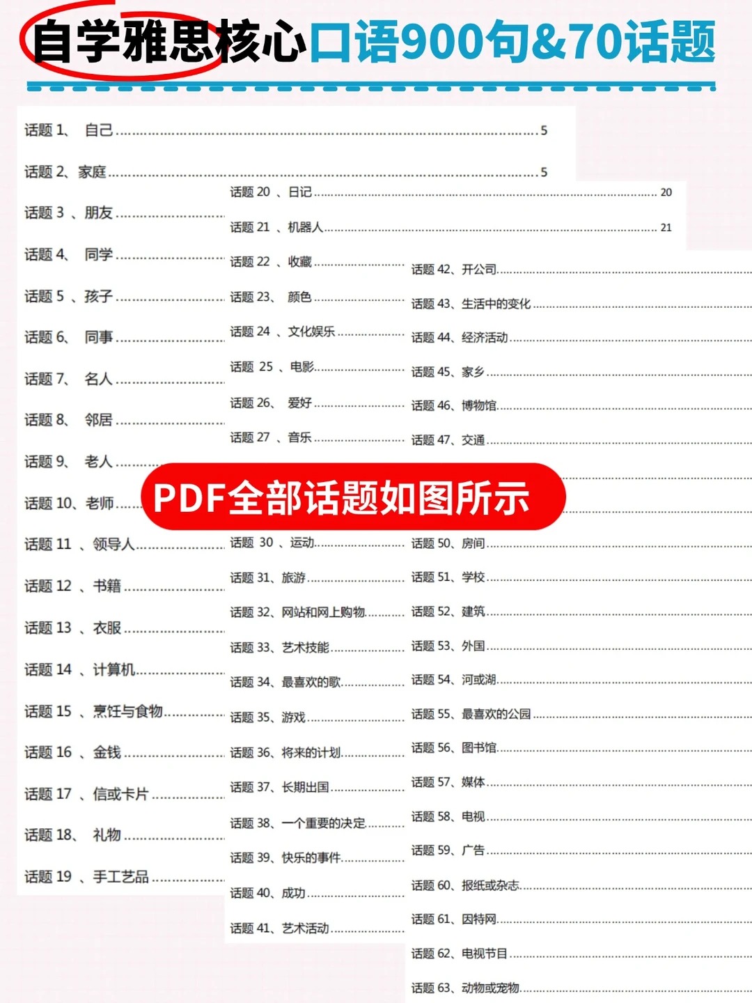 雅思口语话题资料,共900个核心句子,涉及70个话题: