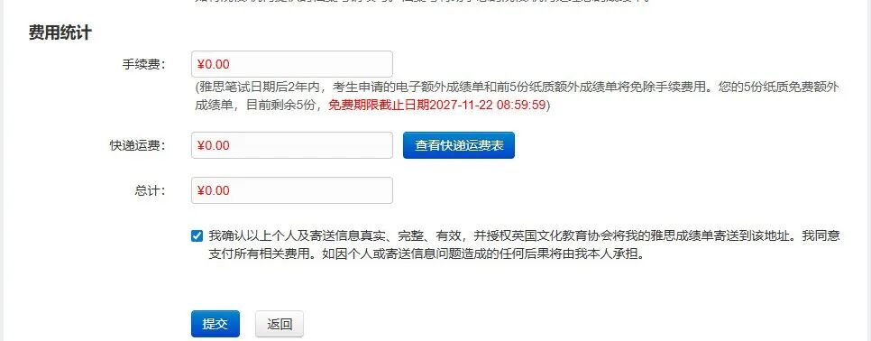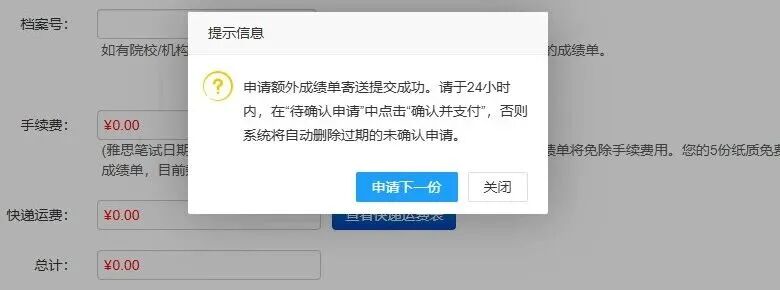 提交申请后,务必进入“待确认申请”板块,点击“缴纳0元费用”,只有完成此步骤,送分申请才会正式进入处理流程。