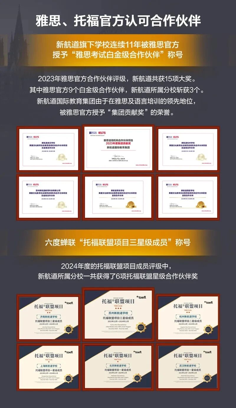 新航道连续多年被雅思官方评为“白金级合作伙伴”,这是雅思官方对培训机构最 高 级别的认可。能获得这一评级,意味着我们的教学质量和学员成绩得到了官方背书。