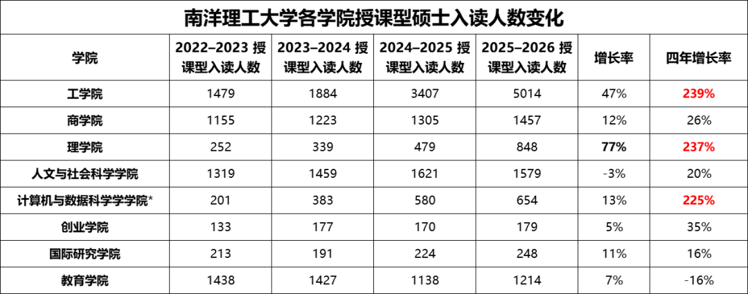 25/26学年,南洋理工大学授课型硕士11,457人,较去年增长27%。