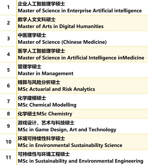 26fall部分新增硕士项目汇总: