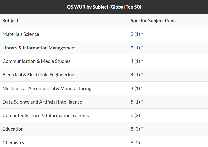 ·电子电气工程全球第4(与哈佛、剑桥、NUS并列)