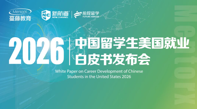 《2026中国留学生美国就业白皮书》将于1月20日发布,由蔓藤教育与新航道前程留学联合撰写,这份报告并非简单的趋势预测,而是一份基于海量数据、最 新 政策与产业洞察的战略地图,旨在为每一位中国留学生厘清前路、锚定方向。