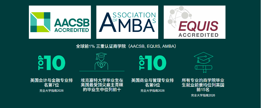 今年,埃克塞特大学首 次向SQA AD项目开放衔接通道!完成Business、Accounting、Financial Services等课程的学生,可直申埃克塞特大学相关本科最后一年,毕业后斩获罗素集团名 校本科学位。作为英国Top15精英大学、三重认证商学院加持的埃克塞特,这次开放无疑为SQA学子提供了一条高含金量的升学路径。机会难得,一起来看详细对接要求!