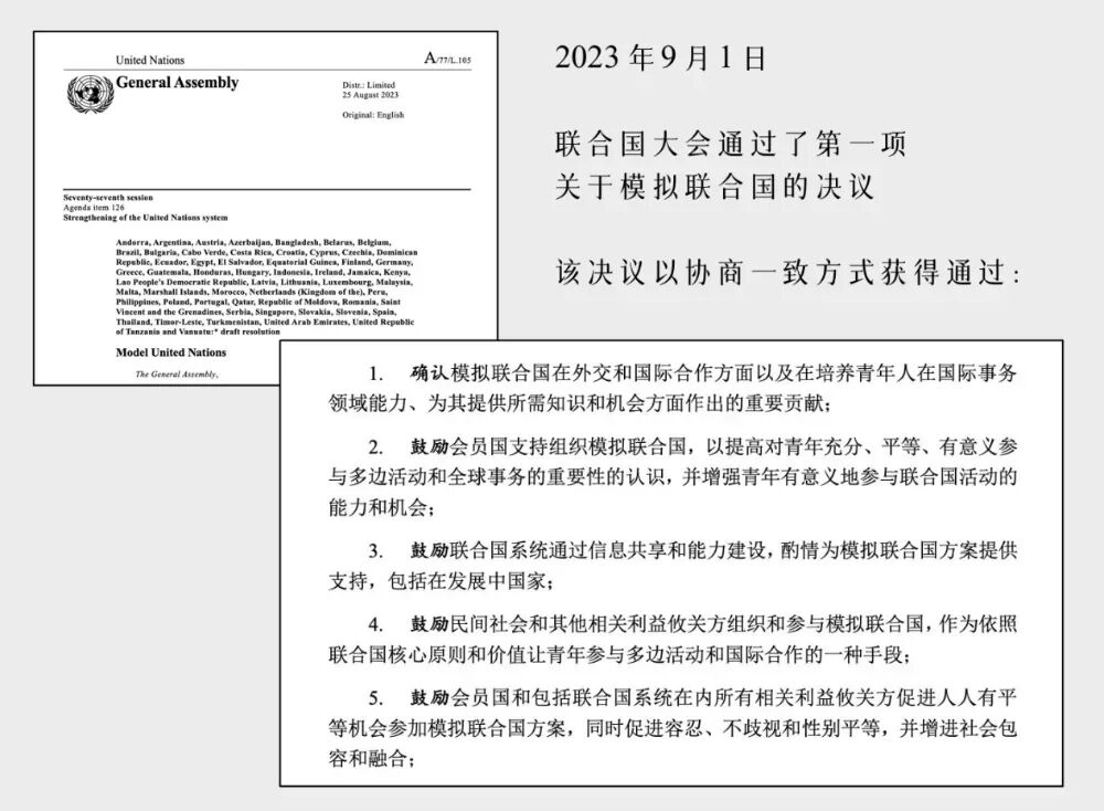 2、联合国通过了关于模拟联合国的决议!