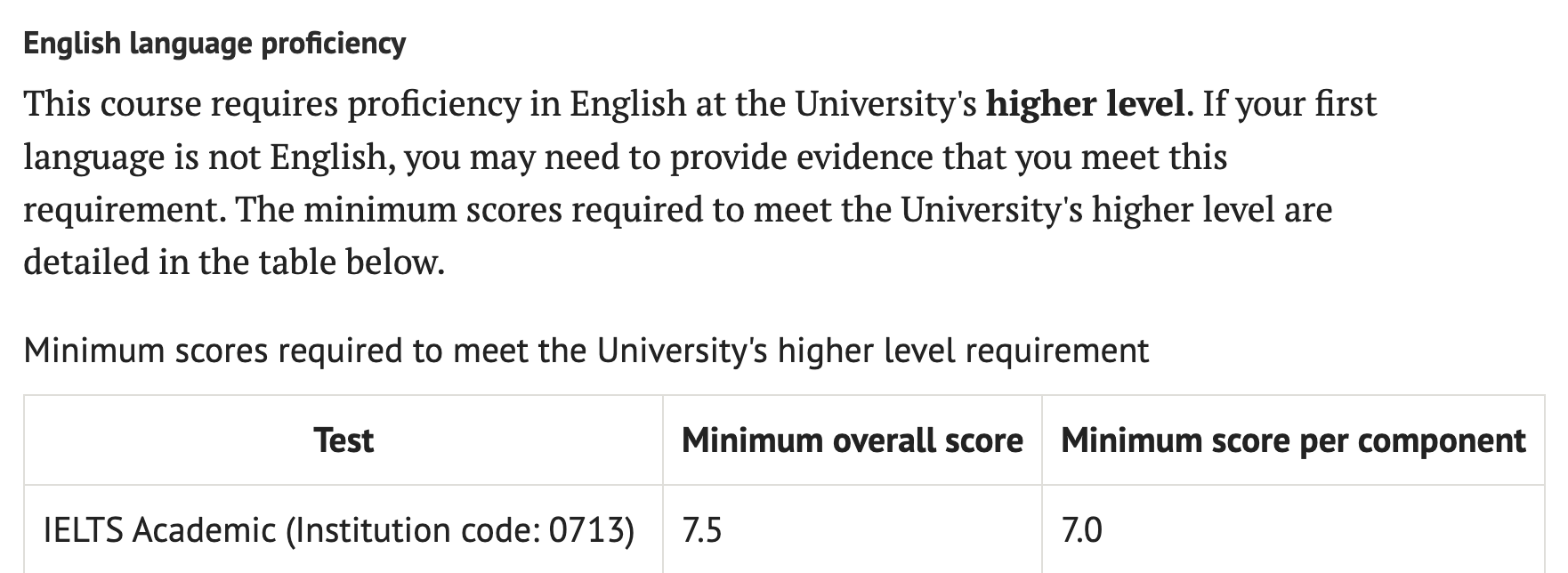 此前牛津大学更新的雅思要求统一为Higher标准,即所有专业都要达到总分7.5,小分是7。