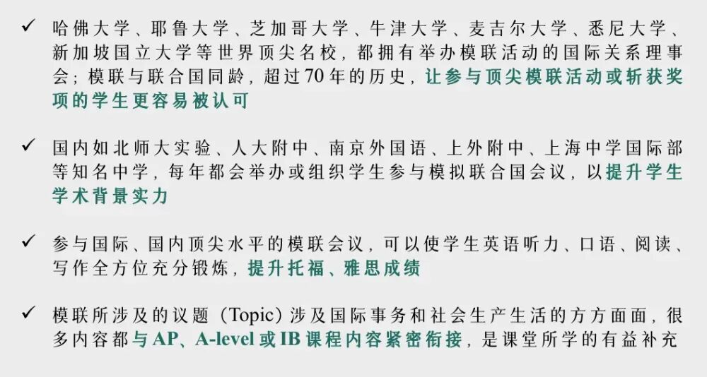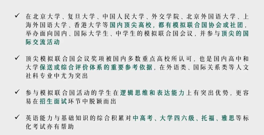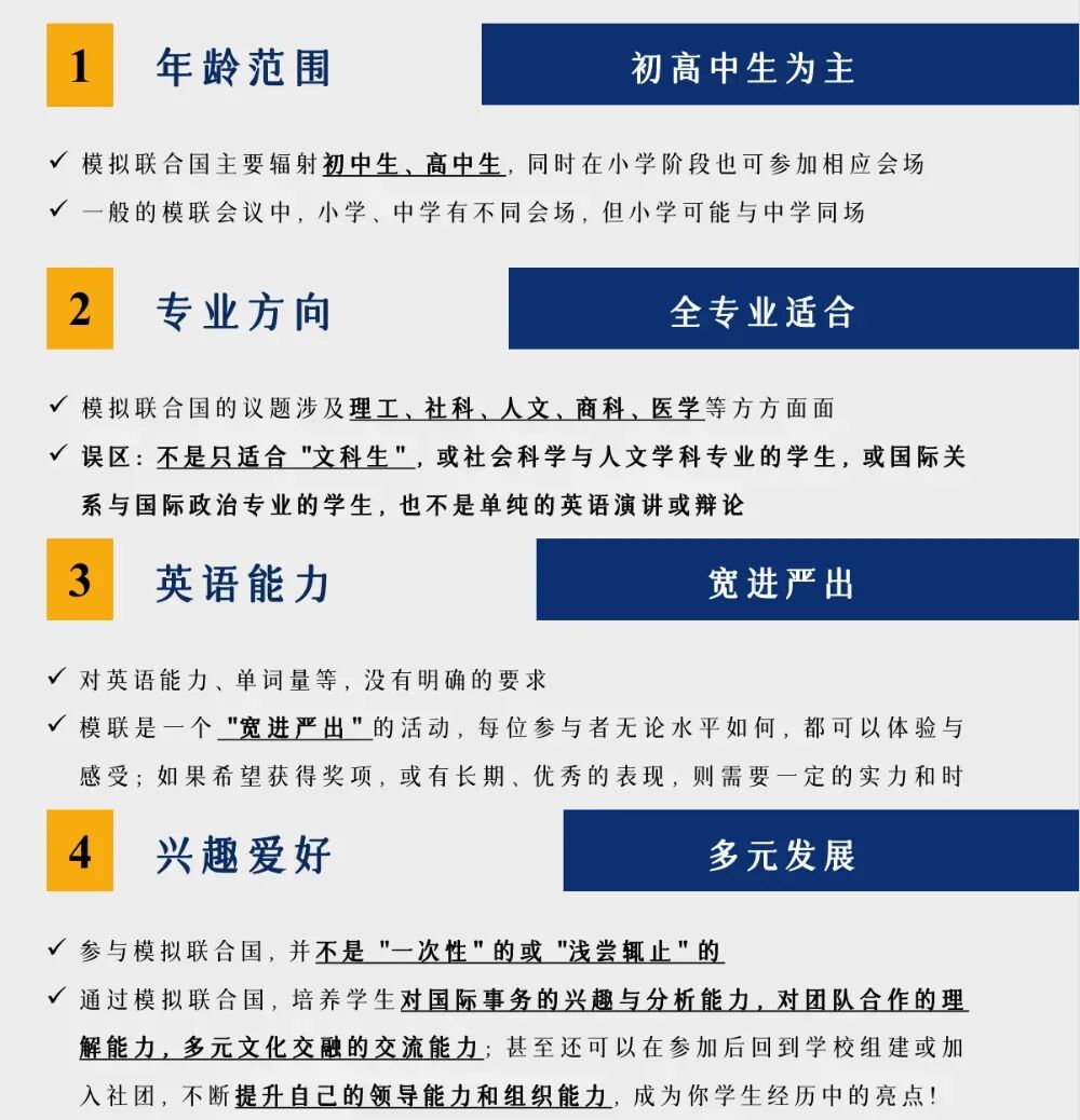 从联合国总部的正式认可,到全球数百万青少年的热情参与,模拟联合国早已超越一项活动的范畴——它是一扇通往世界的窗,更是一场关于表达、思辨与担当的成长历练。在这里,没有专业门槛,只有对世界的关切;没有旁观者,只有参与者。无论你心系人文社科,还是钟情理工商科,模联都能为你提供一方施展才华的舞台。愿你在模拟联合国的世界里,听见自己的声音,也看见更大的世界。