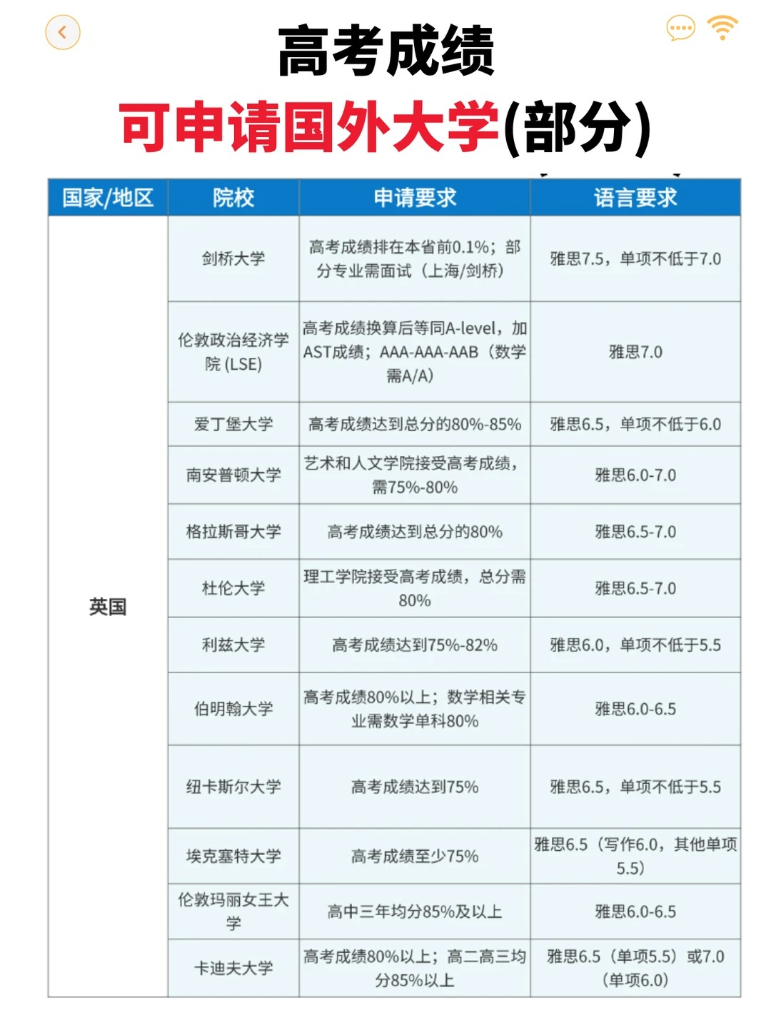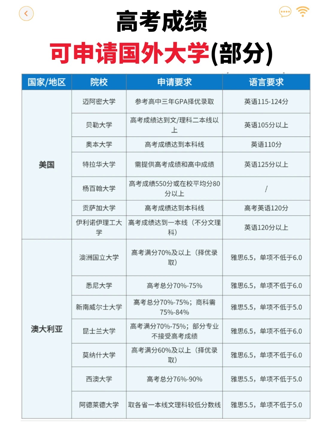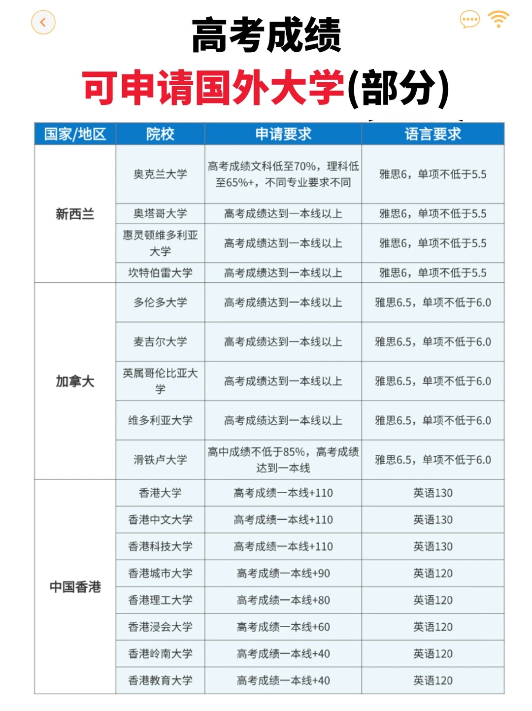 除此之外,还汇总了可以接受高考成绩的部分院校申请要求、语言要求等信息,具体看笔记图片!!!