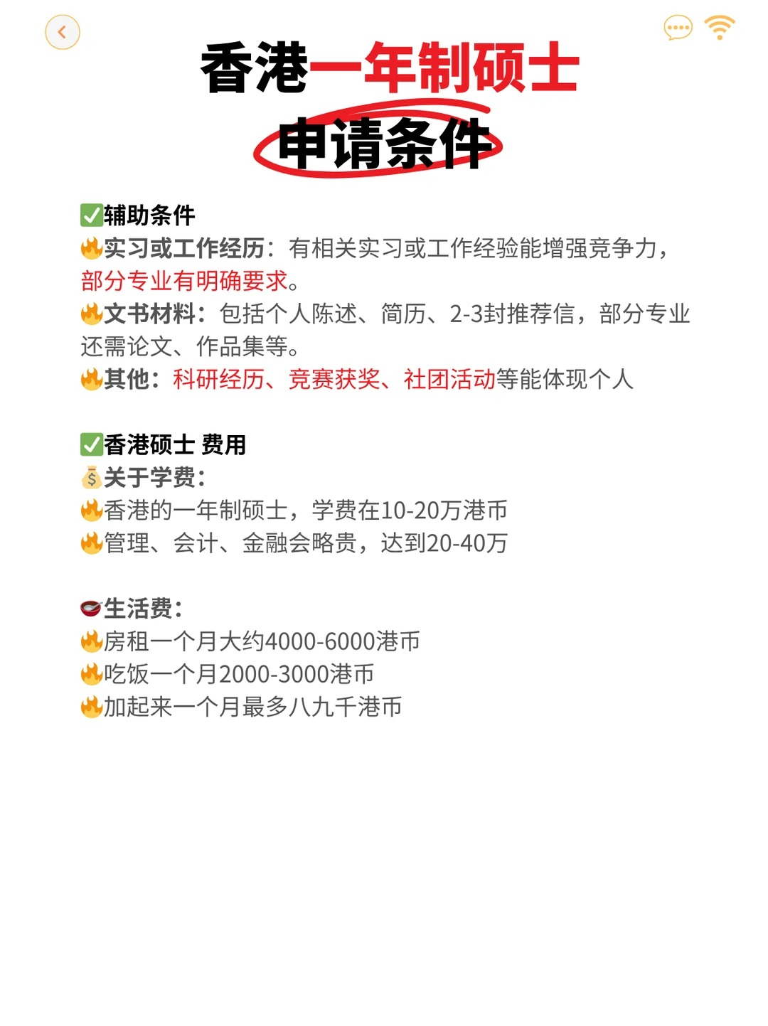 关于学费: 香港的一年制硕士,学费在10-20万港币 。