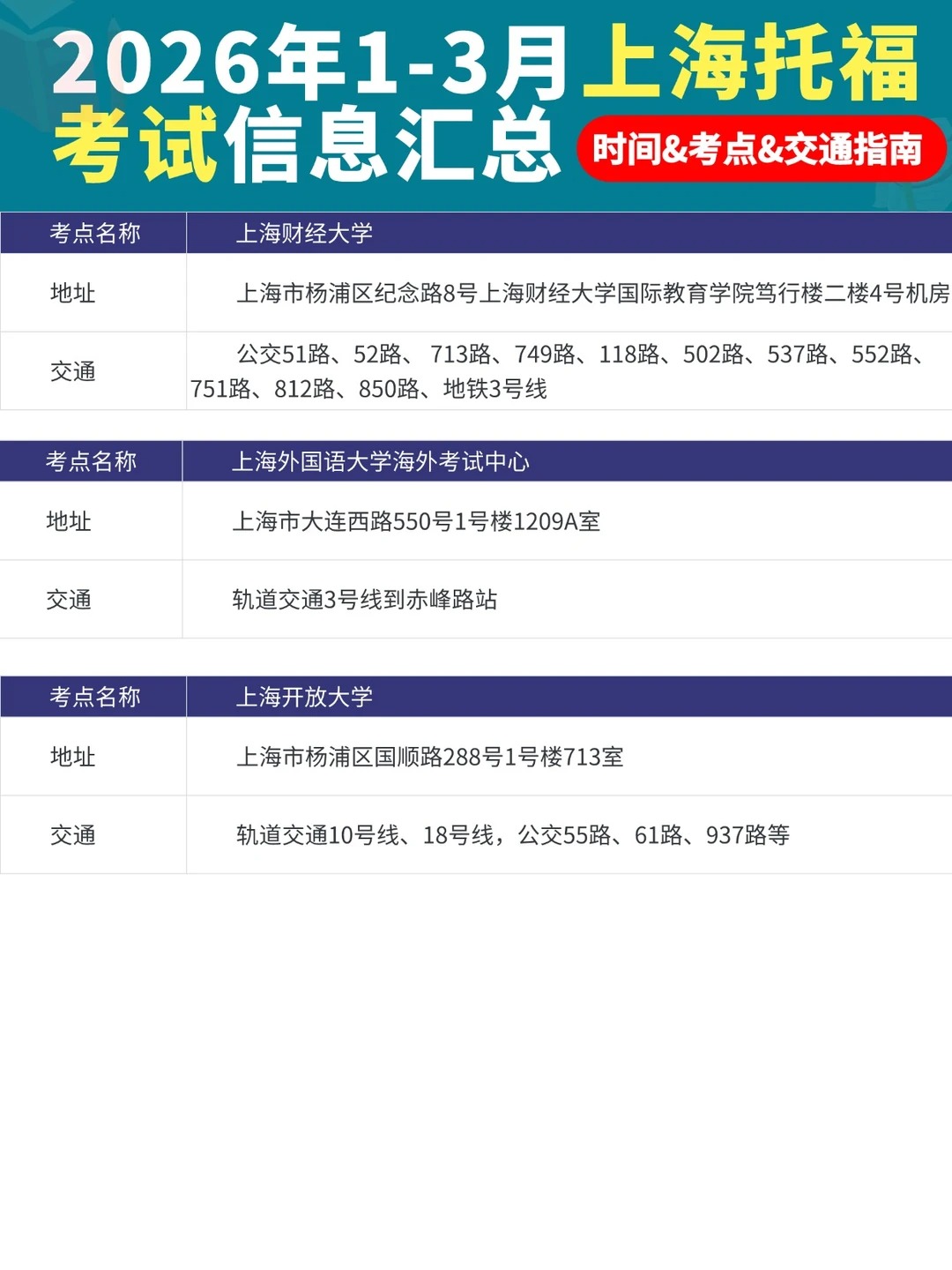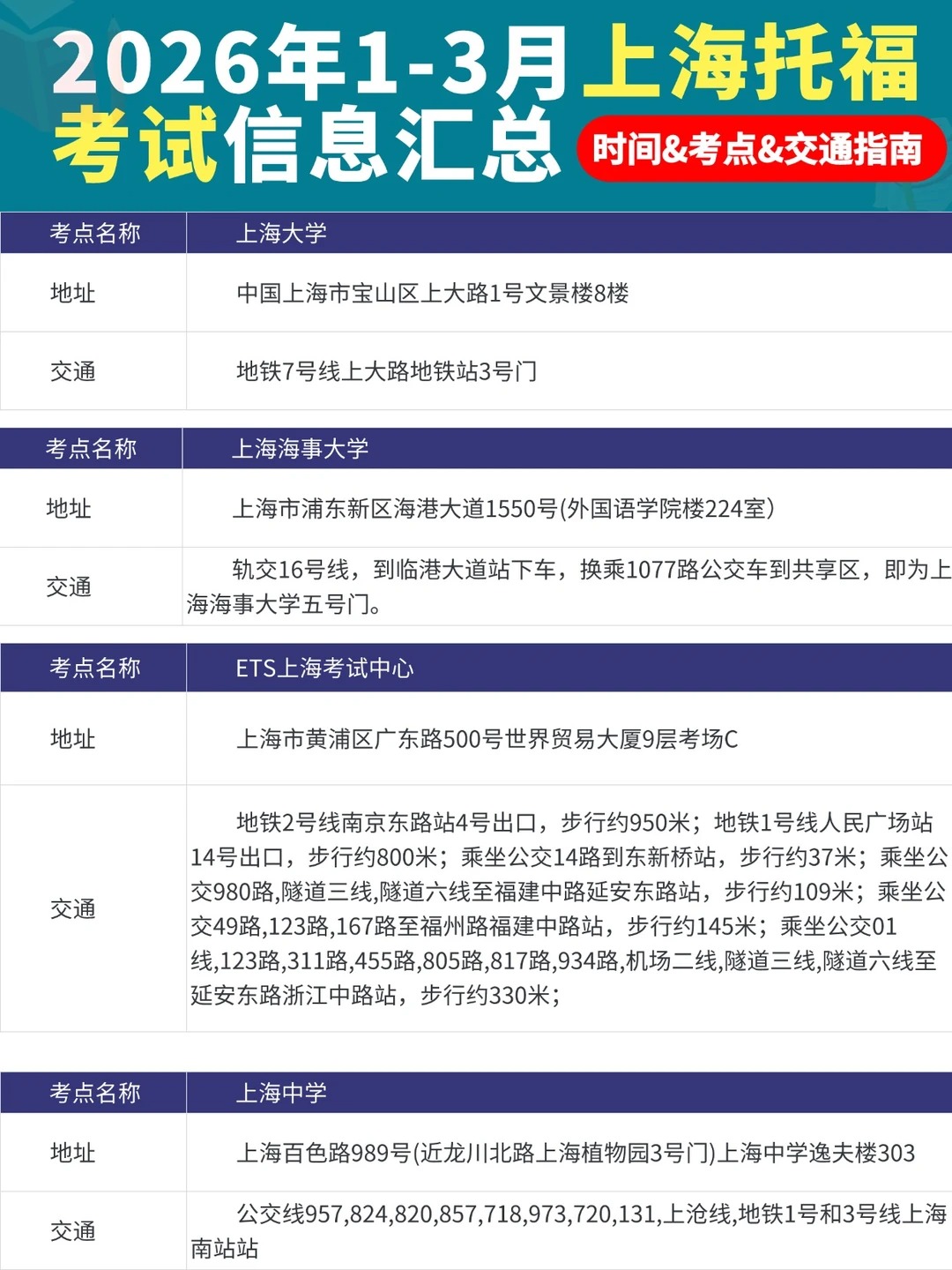 最 新最全!2026上半年上海托福考点、时间全汇总,一篇搞定报考!