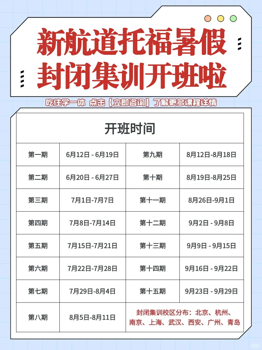假期是托福备考的绝 佳时机,更是实现分数突破的关键窗口。选择封闭集训,不仅是选择了一种高强度的学习方式,更是为自己争取了一次专注突破的可能。如果你渴望在短时间内摆脱拖延、沉浸备考、大幅提分,新航道上海托福集训班已为你准备好一切。立即行动,这个夏天,让我们助你高效冲刺,一举拿下托福高分!