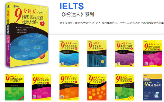 始于2011年的新航道雅思备考经典“9分达人” 系列新品迭出,至今已成为多达19个品种的丛书库。