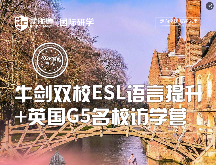 摘要:上海新航道2026年寒假研学营来了:牛剑双校ESL语言提升+英国G5名 校访学营,针对12-17年级小朋友,招生已开启!详情咨询在线客服!