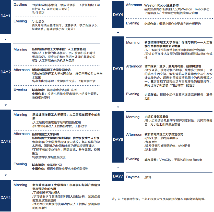 新加坡南洋理工大学实地访学冬令营【人工智能与生物医学】参考行程: